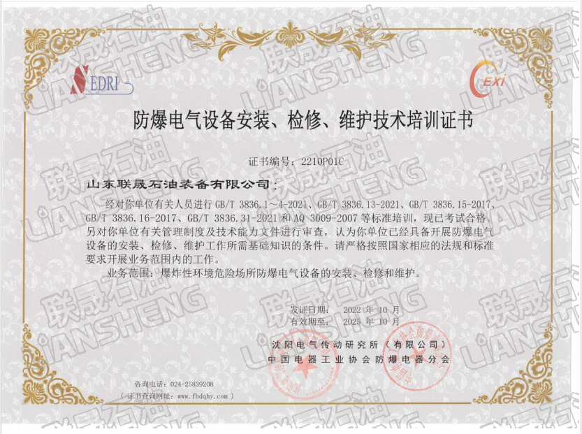 公司通过防爆电气设备安装维修资质认证